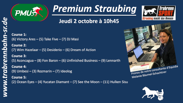 C’est une épreuve où, sur le papier, presque tous les chevaux peuvent gagner. C’est ouvert. Victory Ares (Christoph Fischer) est régulier et performant – c’est une base logique. Take Five (Josef Franzl) a gagné lors de sa dernière sortie à Straubing. Mais attention à DJ Masi (Marisa Bock), qui s’est élancé au galop en bonne position, ou à Princess Peach (Rudi Haller), qui a déjà affronté un bon niveau à Berlin-Mariendorf. Excellent Grandcru (Georg Frick) et SJ’s Legacy (Andreas Geineder) peuvent aussi créer la surprise, tandis que Global Fairplay (Robert Pletschacher), bien que mal engagé au gain, reste en forme.